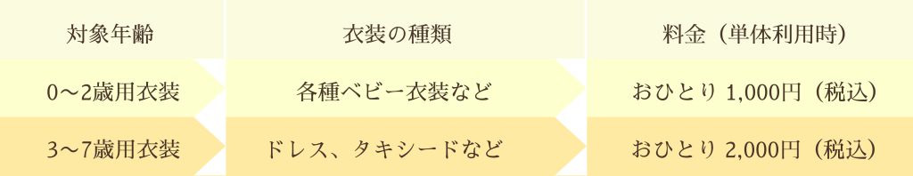 衣装レンタル(1着)とゆったり1時間ブース利用がセットになったお得なプランです。