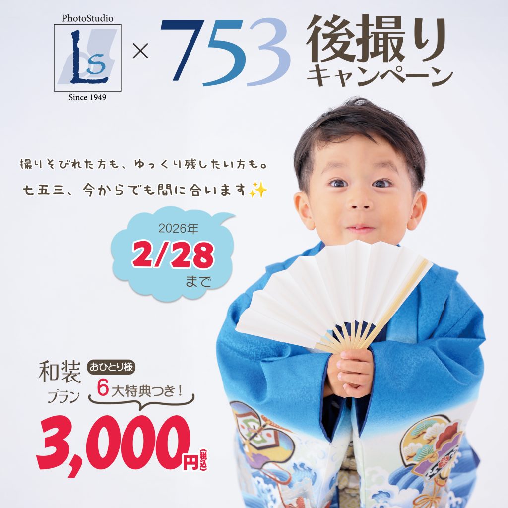 NEW 新着情報 Date 2026.01.09 New! 七五三 後撮りキャンペーン 2026✨ Date 2026.01.01 🎍新年のご挨拶🎍 CAMPAIN キャンペーン情報 Date 2026.01.09 New! 七五三 後撮りキャンペーン 2026✨ Date 2025.09.19 2025 七五三キャンペーン開催中🎉 Archive 過去のインフォメーション ▼ 撮影メニューで絞り込み お知らせ キャンペーン その他 ブライダル 七五三 卒入園・卒入学